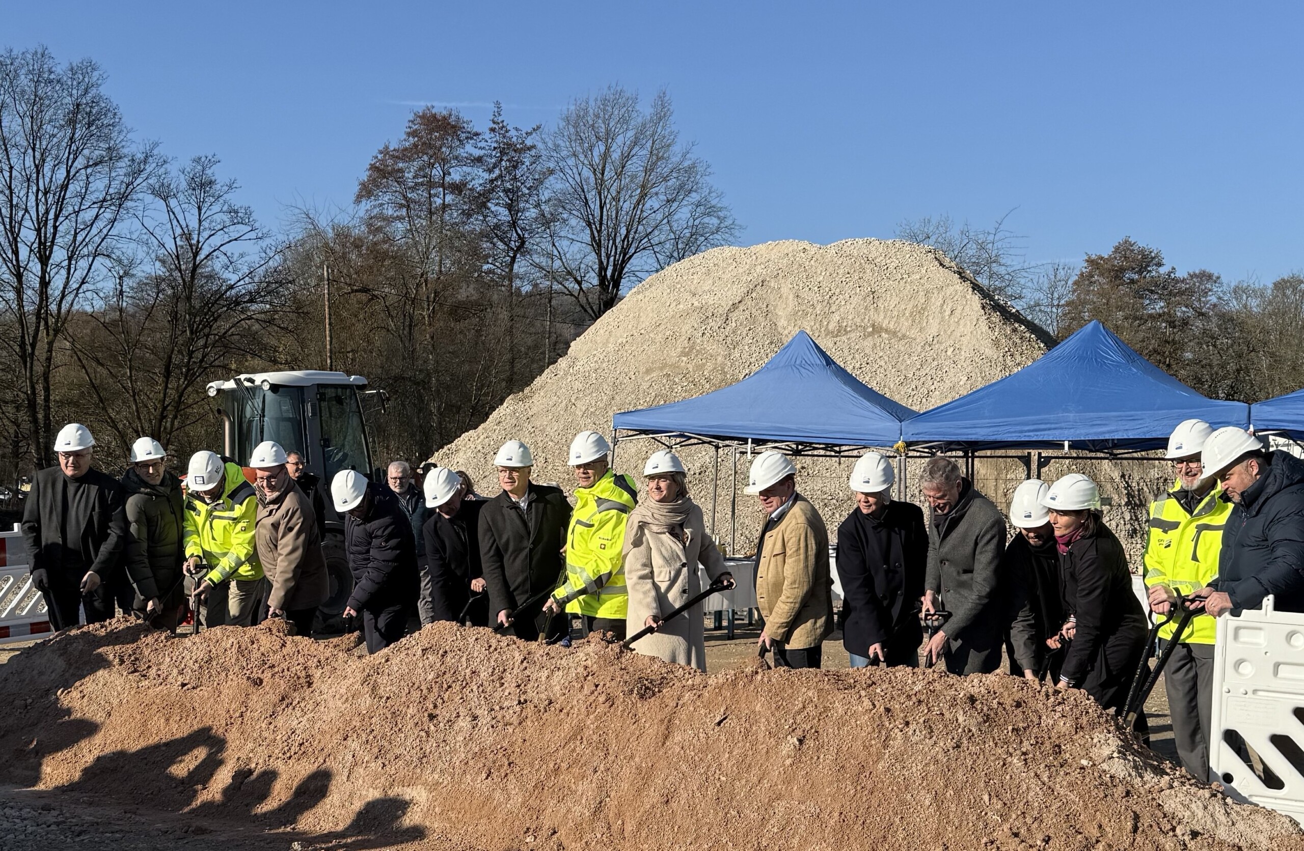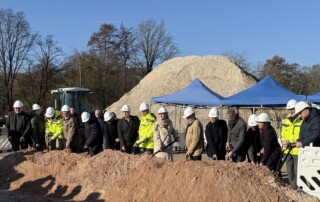 Mit dem symbolischen Spatenstich haben Dr. Nicole Hoffmeister-Kraut, Ministerin für Wirtschaft, Arbeit und Tourismus Baden-Württemberg und Markus Böll, Präsident der Bauwirtschaft Baden-Württemberg mit vielen weiteren Teilnehmern heute den Startschuss für den Neubau des Bildungszentrums Baugegeben.