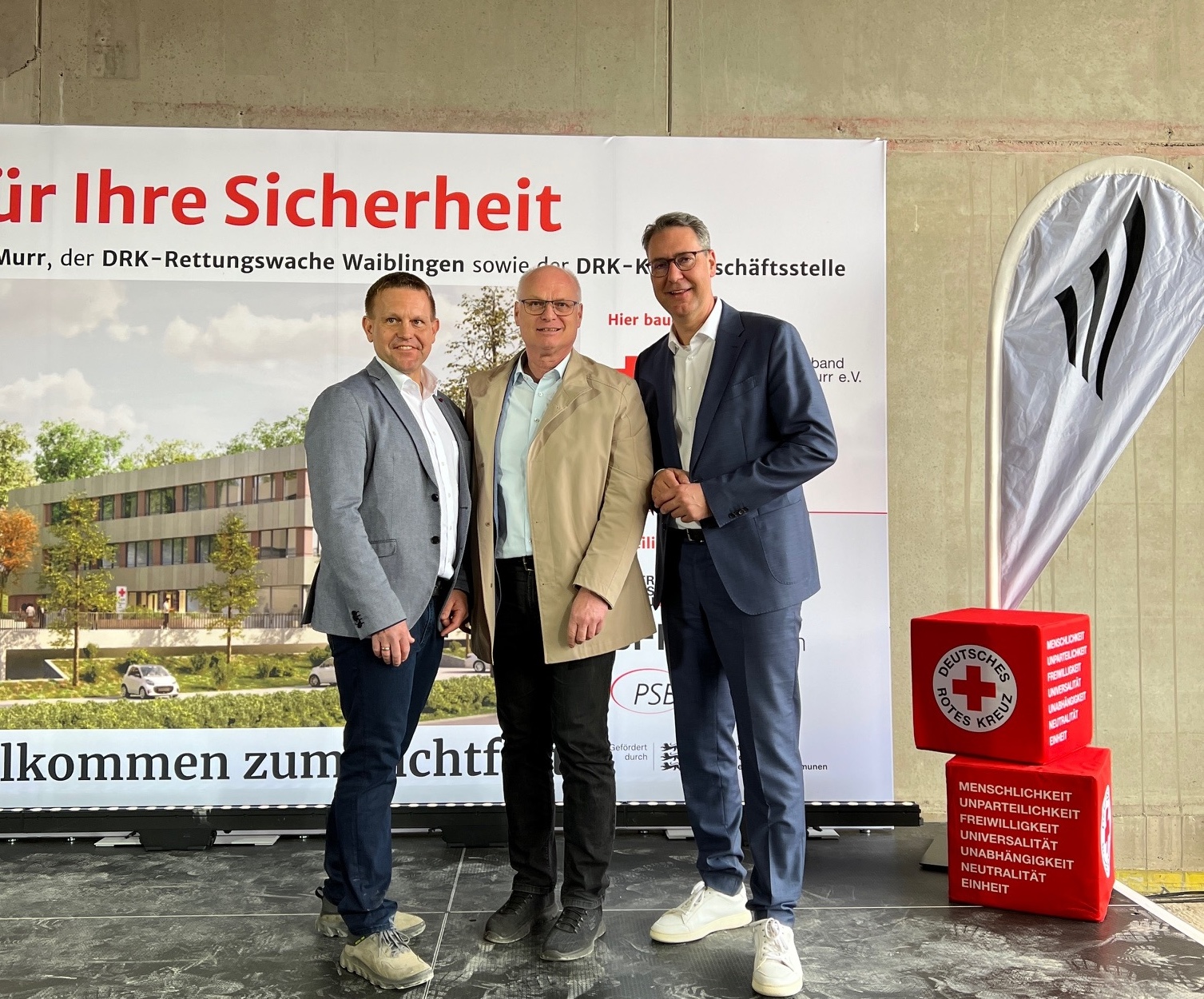 Am Dienstag, 23. März konnte am Neubau des DRK Kreisverbands Rems-Murr das Richtfest gefeiert werden. Eine wichtige Investition in die Zukunft für die Sicherheit und Gesundheit der gesamten Bevölkerung des Rems-Murr-Kreis, auch für Remshalden. Auf dem Foto: Landrat Dr. Richard Sigel, Geschäftsführer des DRK-Kreisverbands, Sven Knödler und Bürgermeister Reinhard Molt